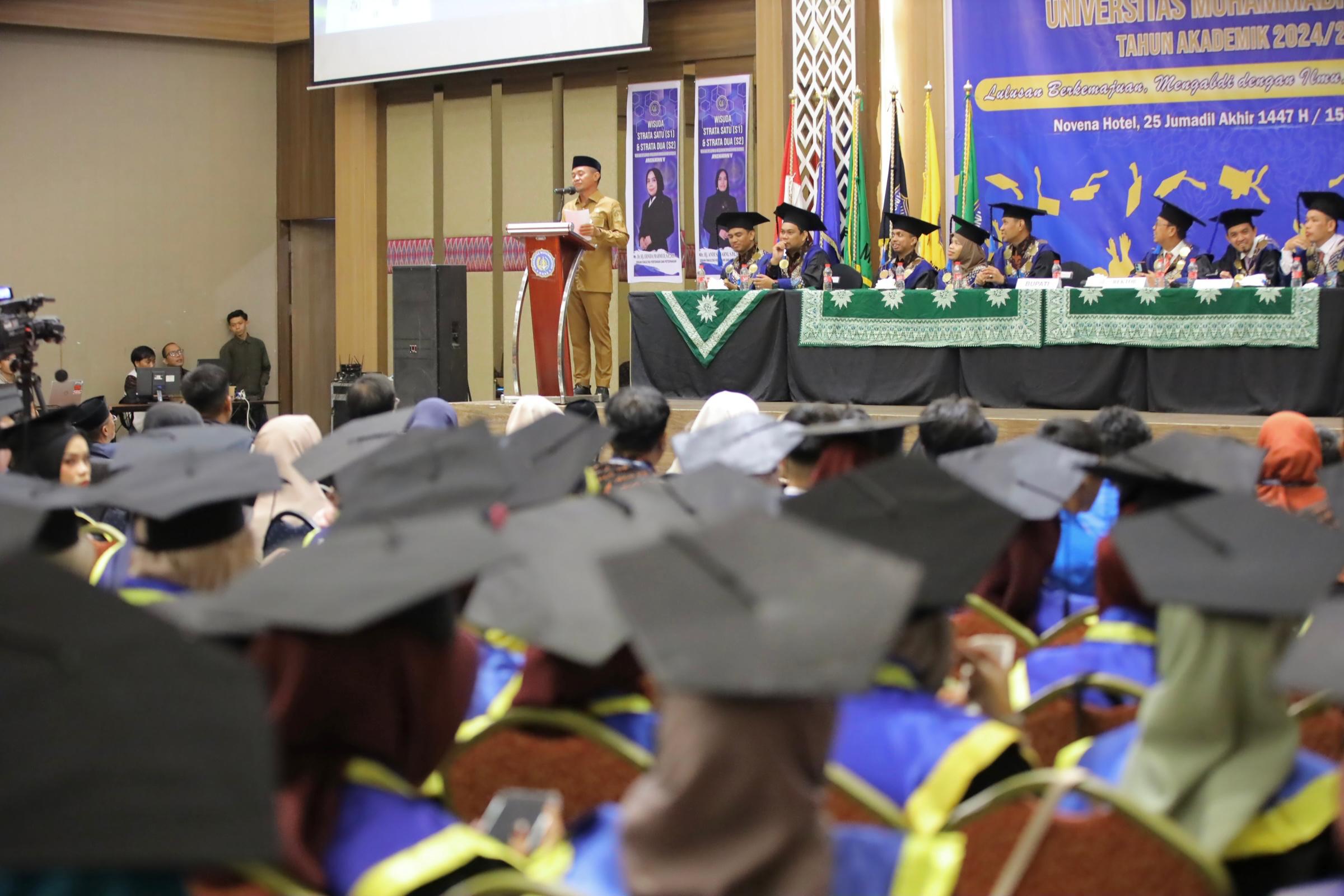 Dalam sambutannya, Bupati Asman mengajak para wisudawan untuk terus mengembangkan potensi diri dan memberikan kontribusi positif bagi daerah. Ia menilai lulusan perguruan tinggi memiliki peran strategis dalam mendorong kemajuan Bone di berbagai sektor, mulai dari pendidikan, ekonomi, hingga pelayanan publik.